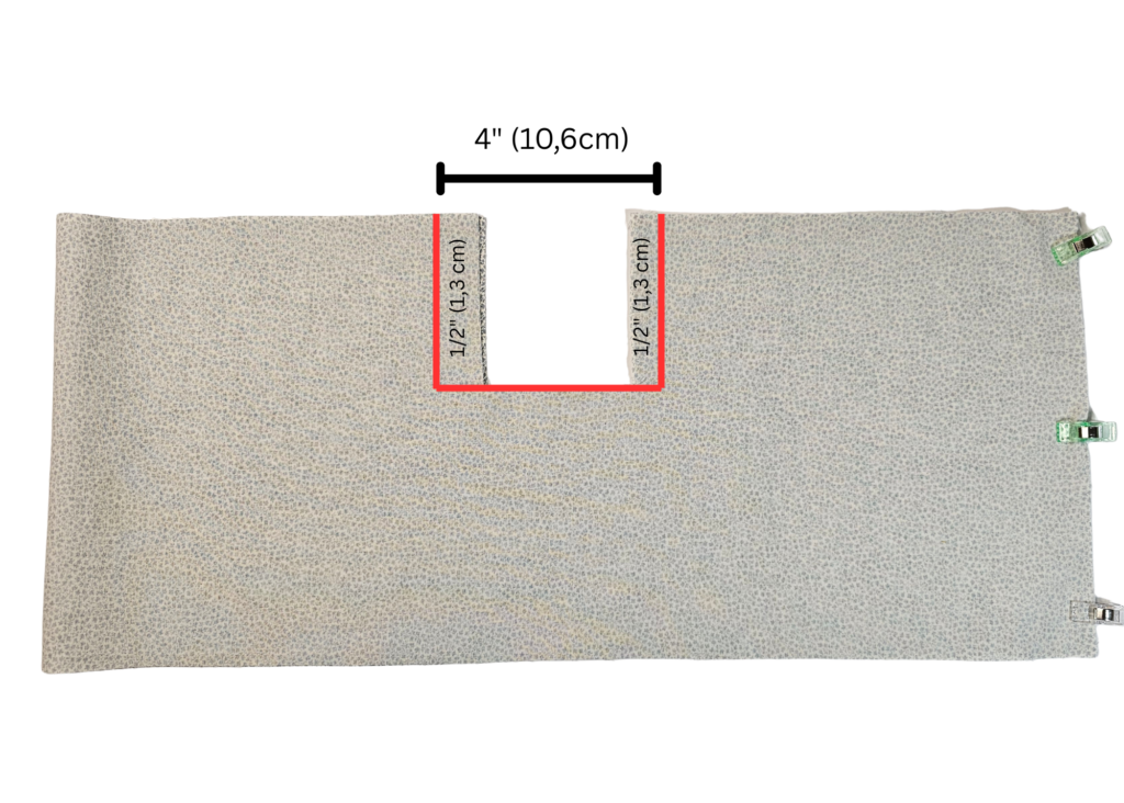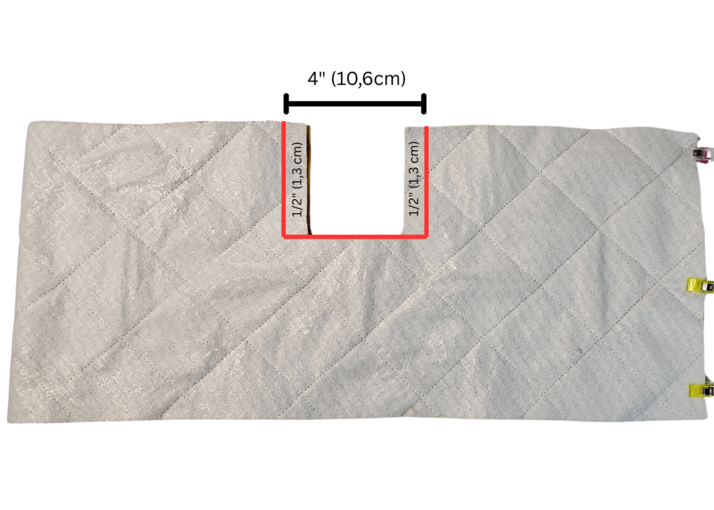 So in this example, we would cut 1/2" (1,3cm) from both sides of the cut-out area.