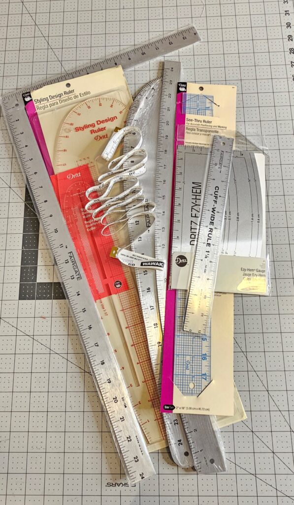 I received an assortment of rulers from a sewing supply company called Wawak. I love Wawak, so I'm going to add some links to so you can check them out there. Plus, I already had a few to start with.