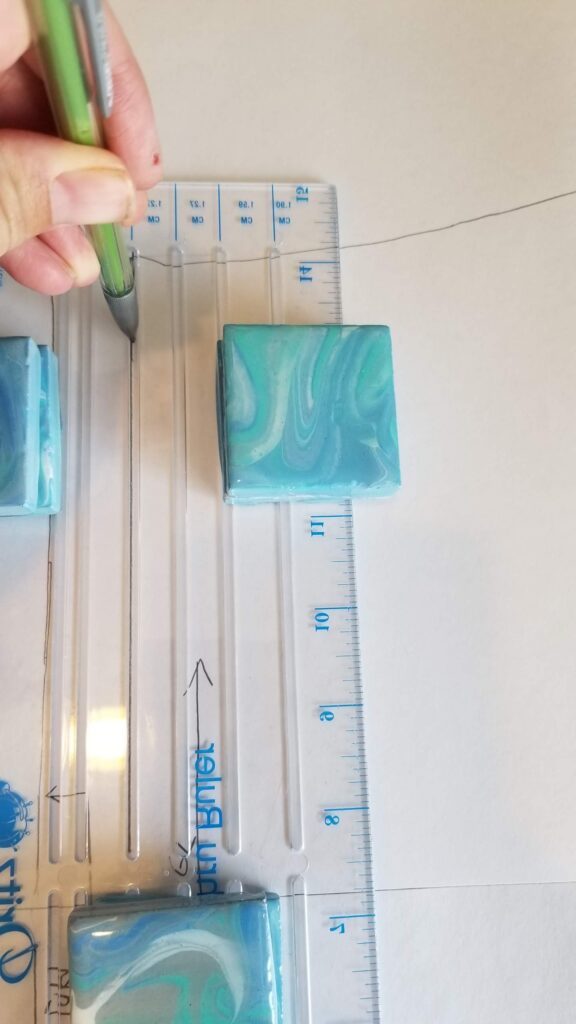 Another neat feature of this specific ruler is that it has cutouts so that you can draw lines within the ruler itself (as seen below).
