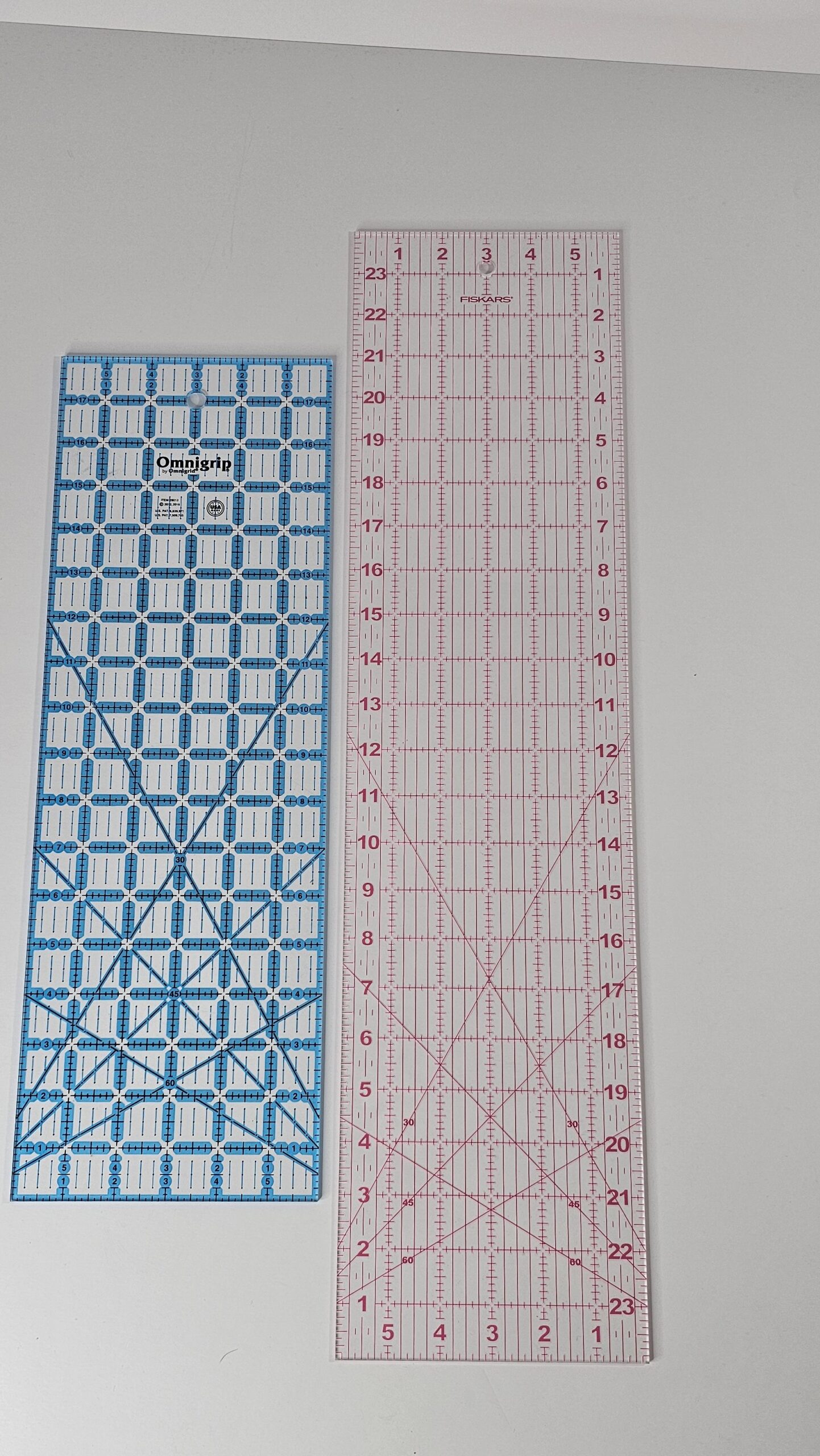 These long clear rulers work perfectly for marking lines and cutting bands and binding. The also make it soo easy to not only cut the length but also the width. Simply overlap the ruler onto the fabric the width you need and cut straight down the length you want.