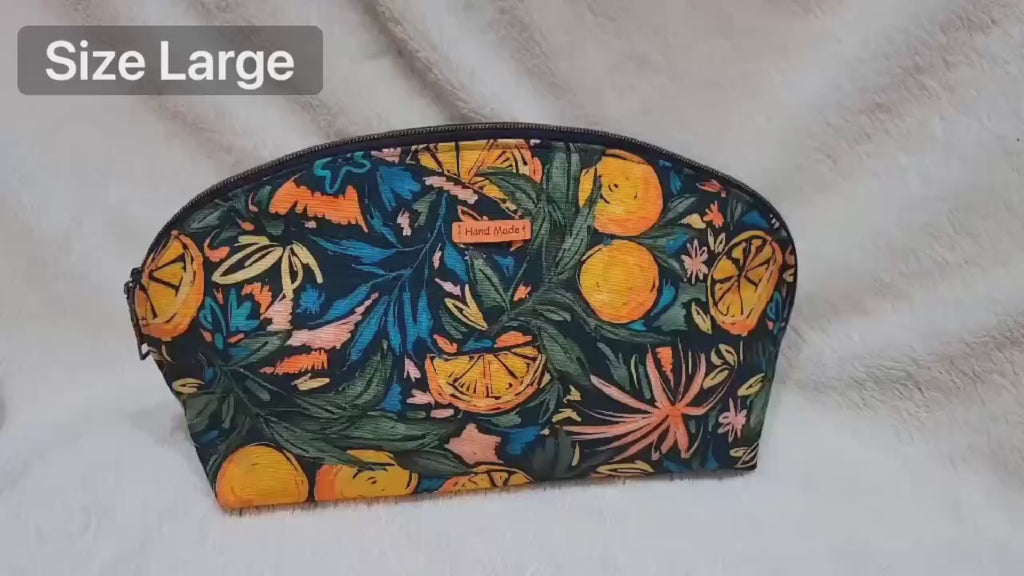 Nylon 400D, Ripstop Nylon or waterproof canvas fabric. These fabrics are light weight, durable, quick-drying and easy to clean. This is helpful when using it as a cosmetics bag or to store things such as shampoo, lotion or toothpaste. Alternatively, you can also use other lightweight woven fabric like quilting cotton, woven cotton blends, etc.